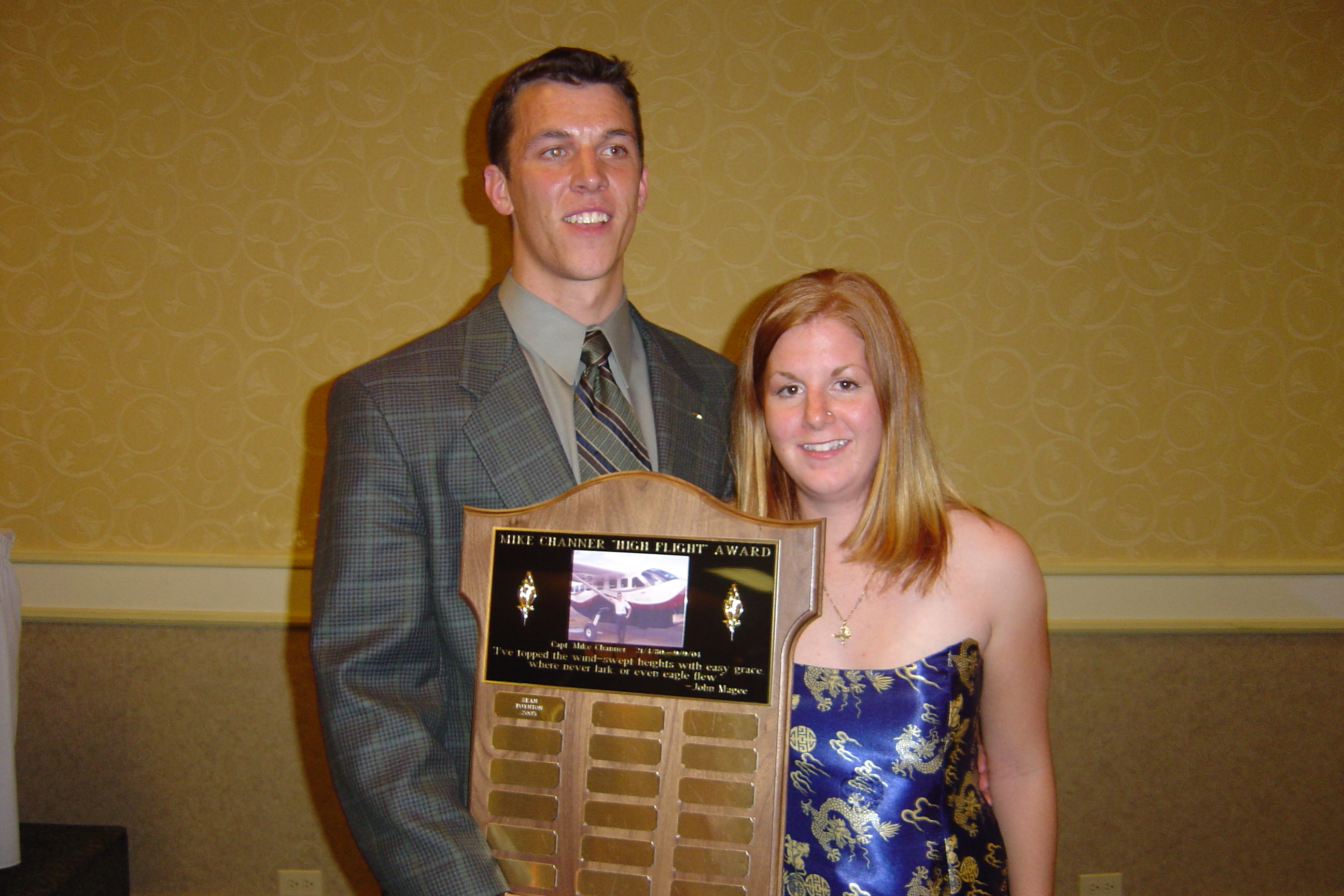"The Mike Channer Memorial High Flight Award" by Sean S. Poynton  Me and Mellisa 25 July 2005 I was the first recipient of the Mike Channer High Flight Award, graduating from Sault College Class of 2005, and was exceedingly proud to have been given such a prestigious award.